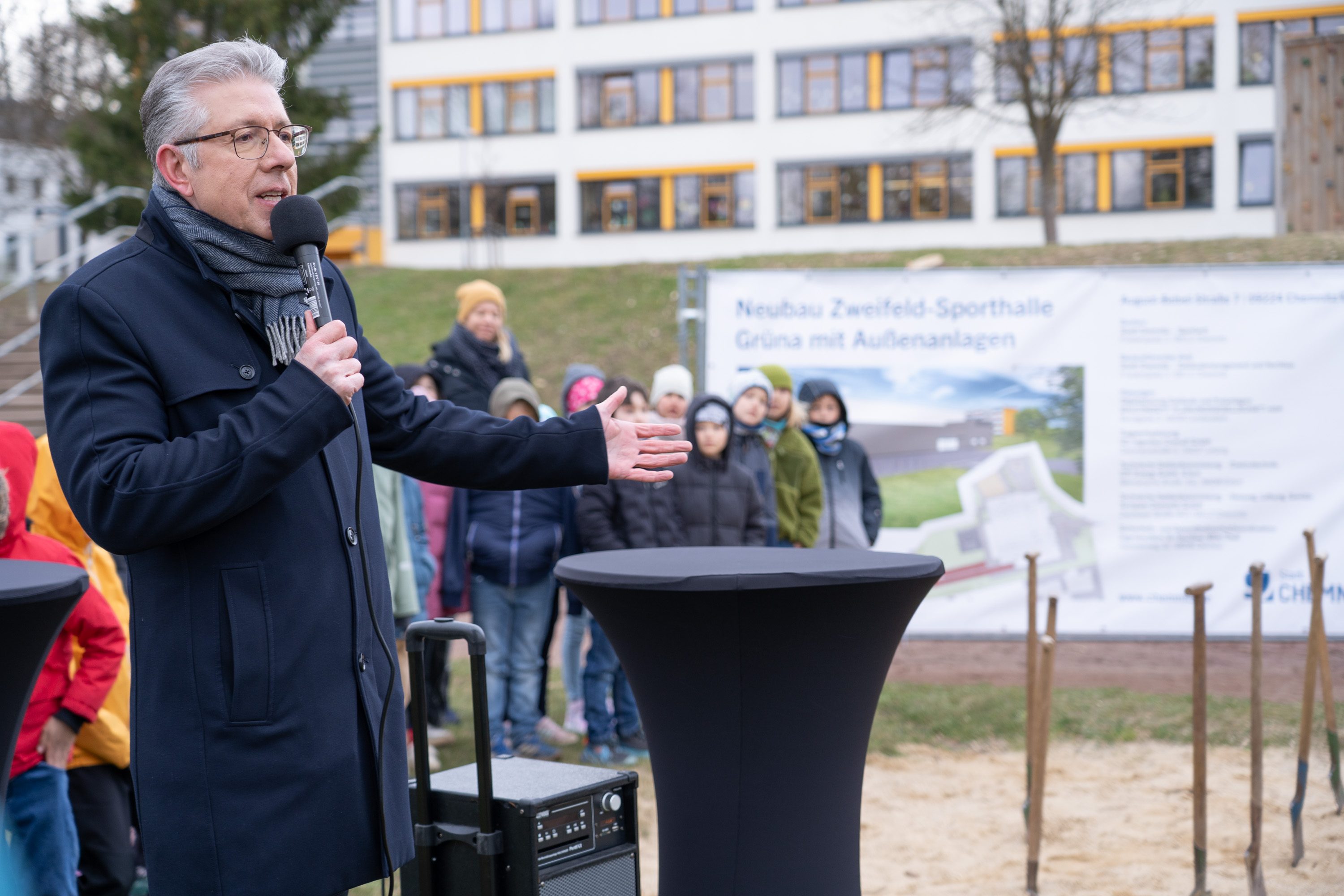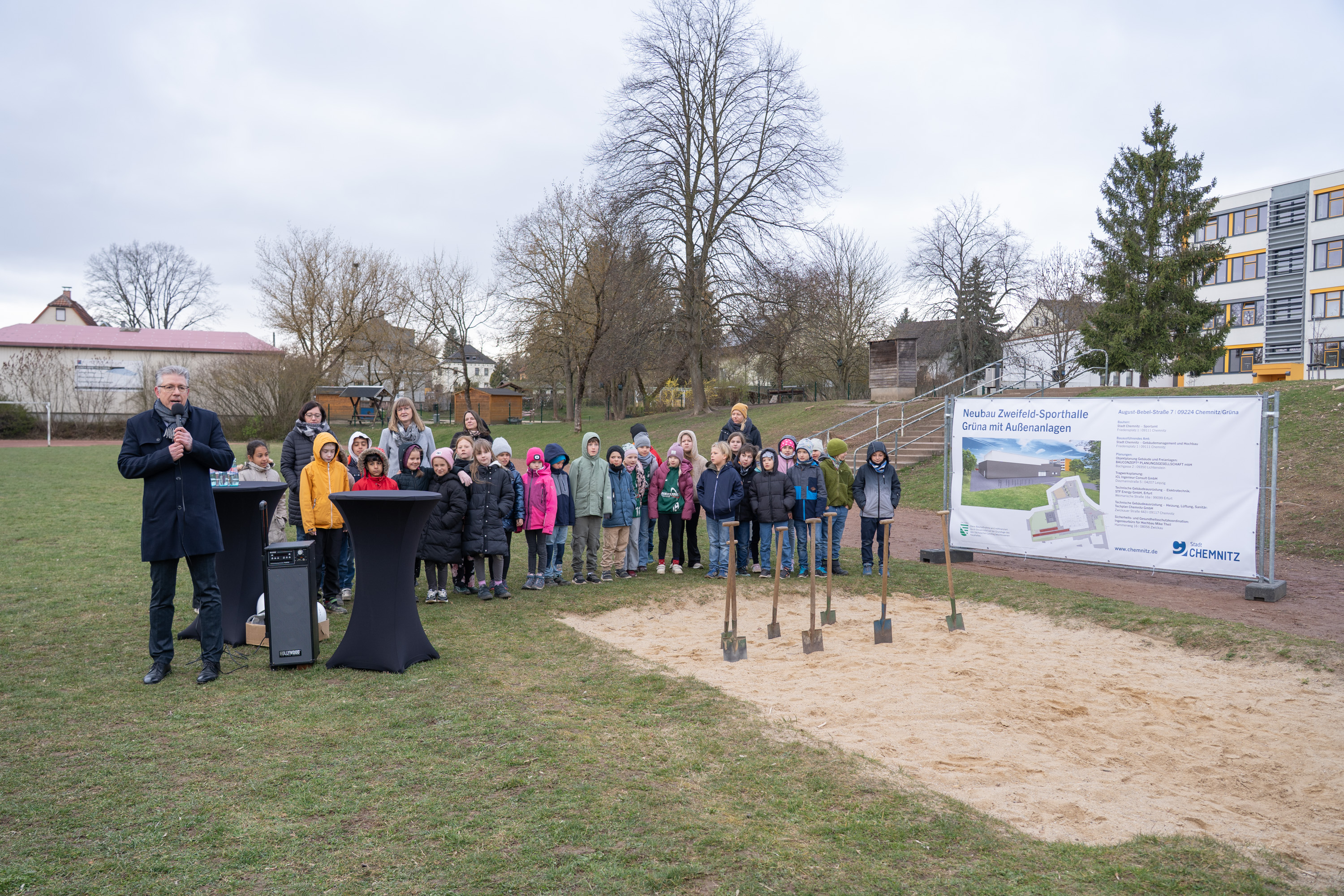 Dne 26. listopadu 2025 schválila městská rada výstavbu nové sportovní haly se dvěma kurty ve čtvrti Grüna v Chemnitz na místě základní školy Baumgarten (B-163/2025). Stavba bude zahájena v polovině dubna. Hrubá stavba by měla být dokončena do konce letošního roku, dokončení včetně venkovního zázemí je plánováno na březen 2028.