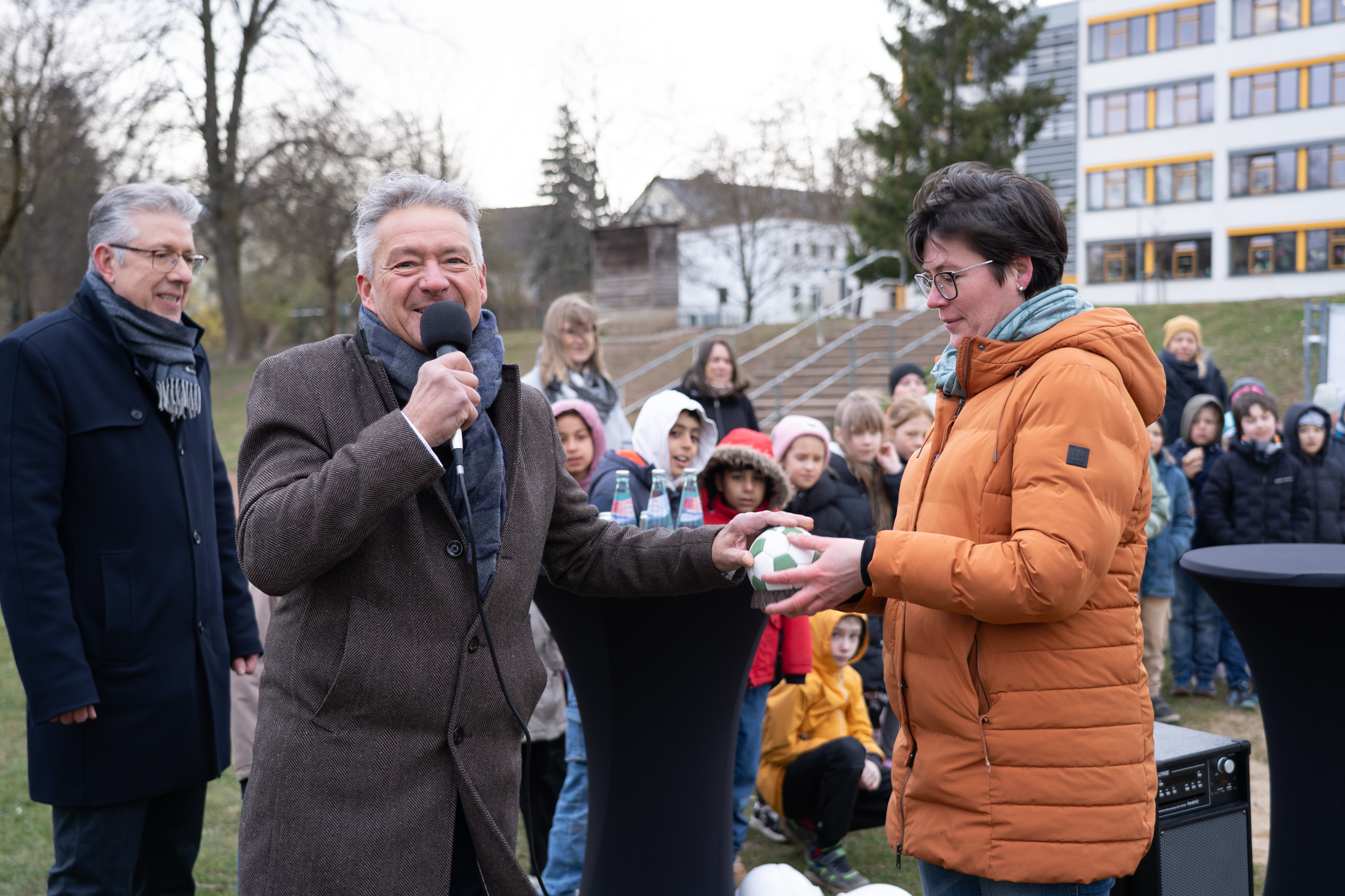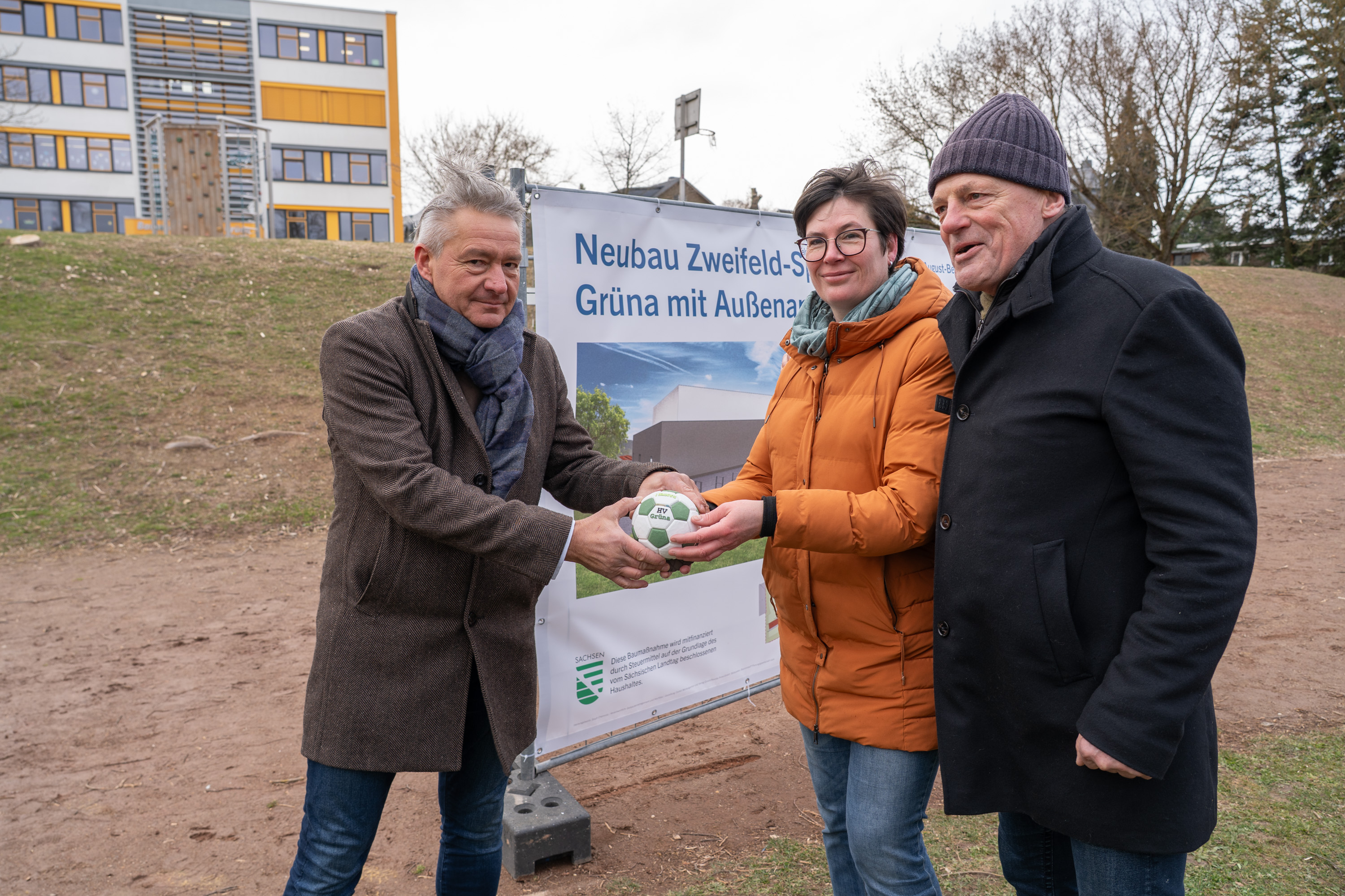 Na slavnostní položení základního kamene se vedle starosty Ralpha Burgharta dostavili vedoucí sportovního úřadu Roger Rabenhold, vedoucí školského úřadu Jirka Meyer a zástupci sportovních klubů Grüny. Z výstavby nové sportovní haly měl radost i bývalý reprezentant Georg Rothenbrger starší, který svou sportovní kariéru začínal v házenkářském klubu v Grüně.