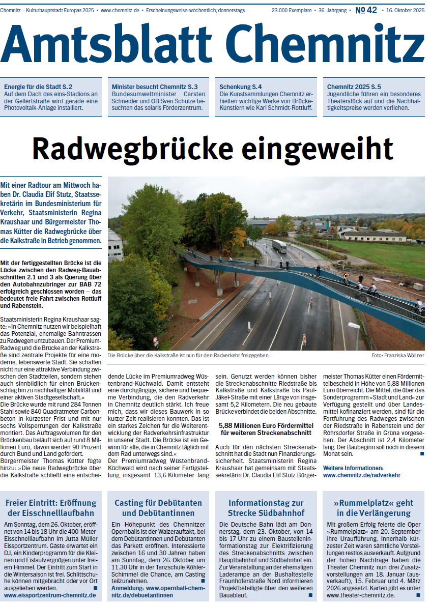 - Slavnostní otevření mostu přes cyklostezku: Most přes Kalkstraße je od středy otevřen pro cyklistickou dopravu.