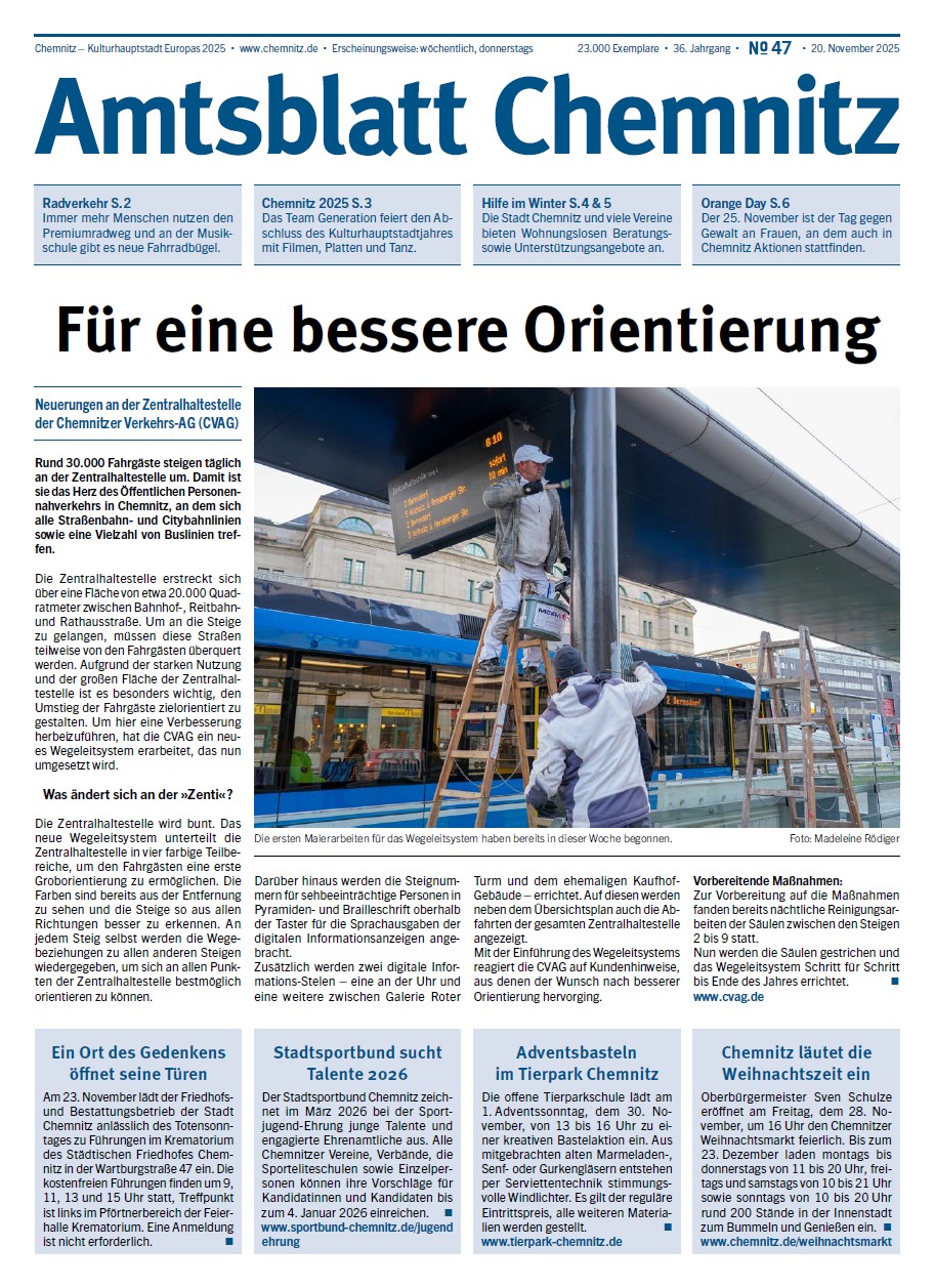 - Místní oznámení podle § 34 odst. 2 saské vyhlášky o vlastním podnikání (SächsEigBVO) Usnesení o přijetí roční účetní závěrky za rok 2024 hřbitovního a pohřebního podniku města Chemnitz