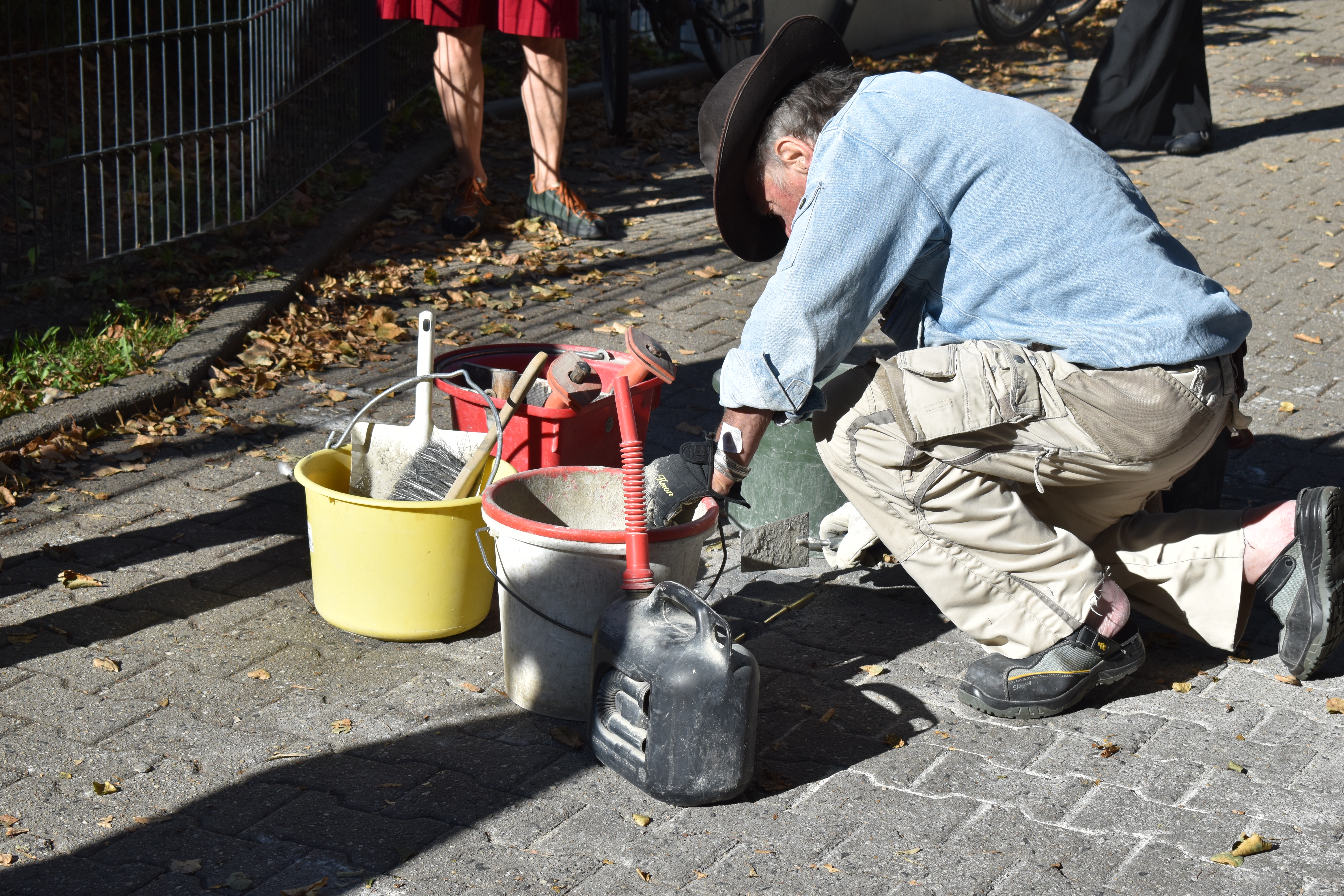 Fotografie z pokládání kamenů úrazu