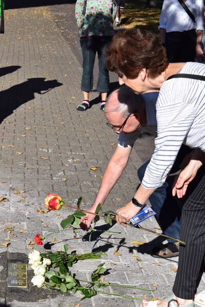 Pamětní kameny zasazené do chodníku připomínají tragické osudy spoluobčanů, kteří byli během nacionálně socialistického režimu pronásledováni, deportováni, zavražděni nebo dohnáni k smrti.