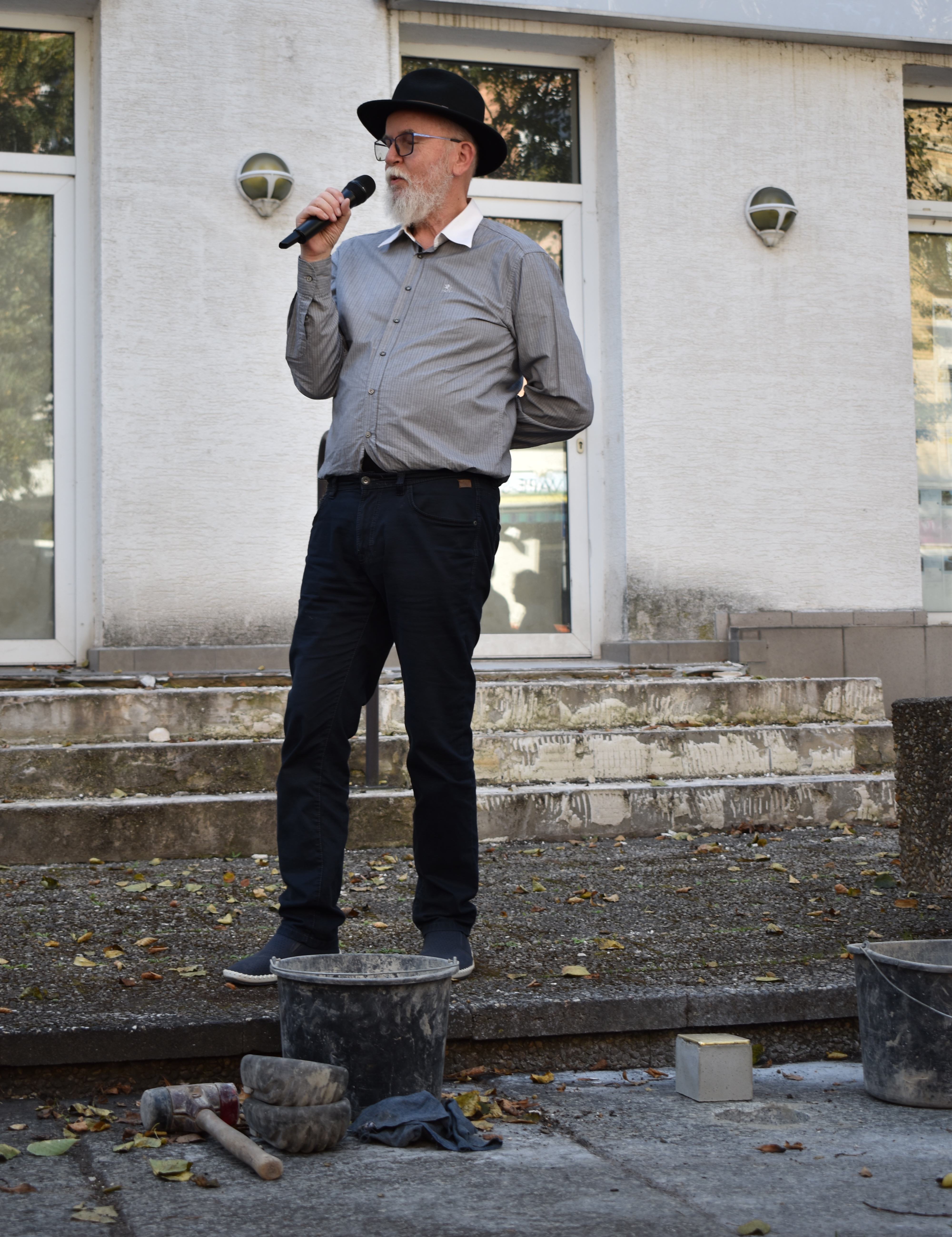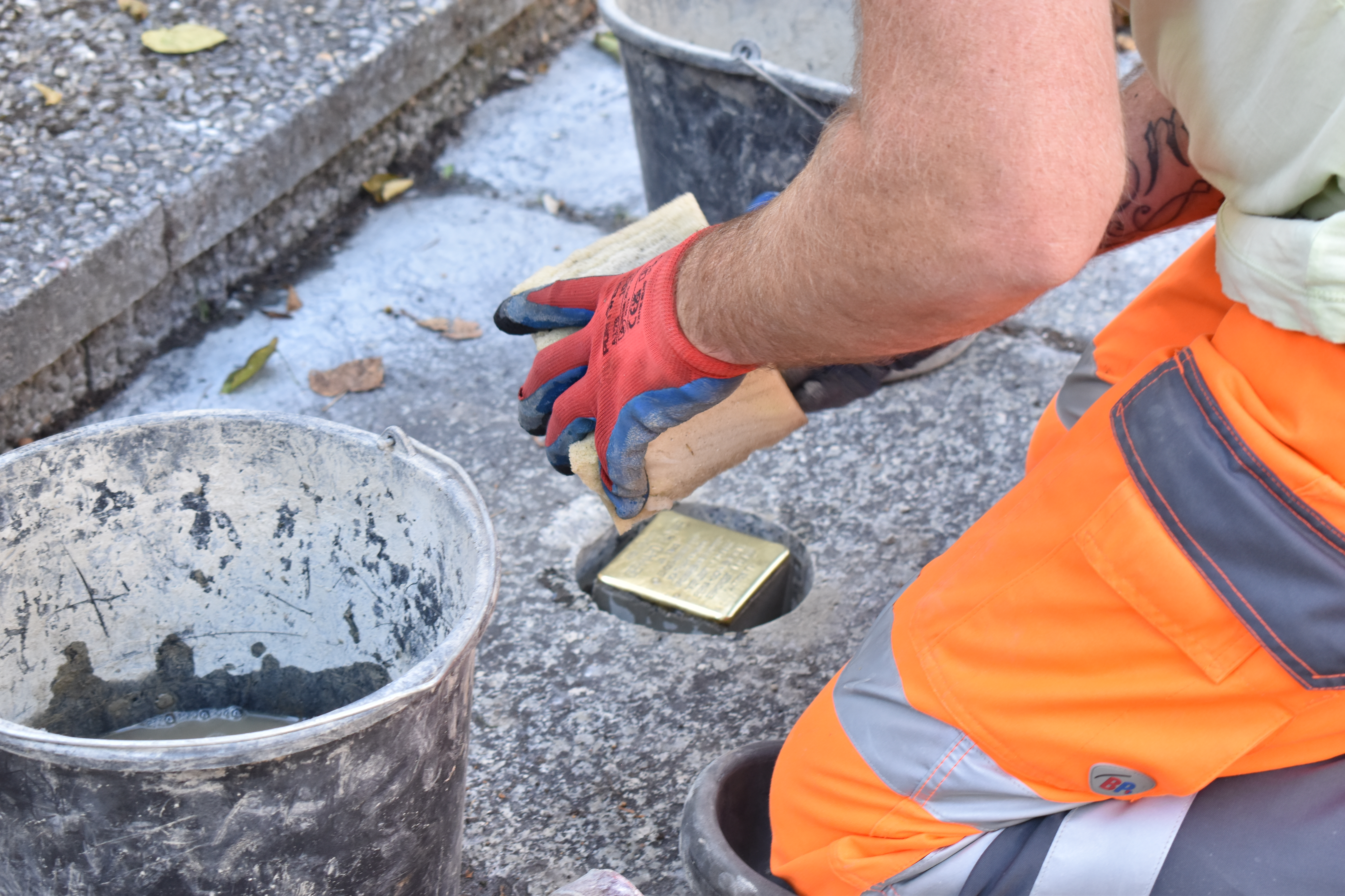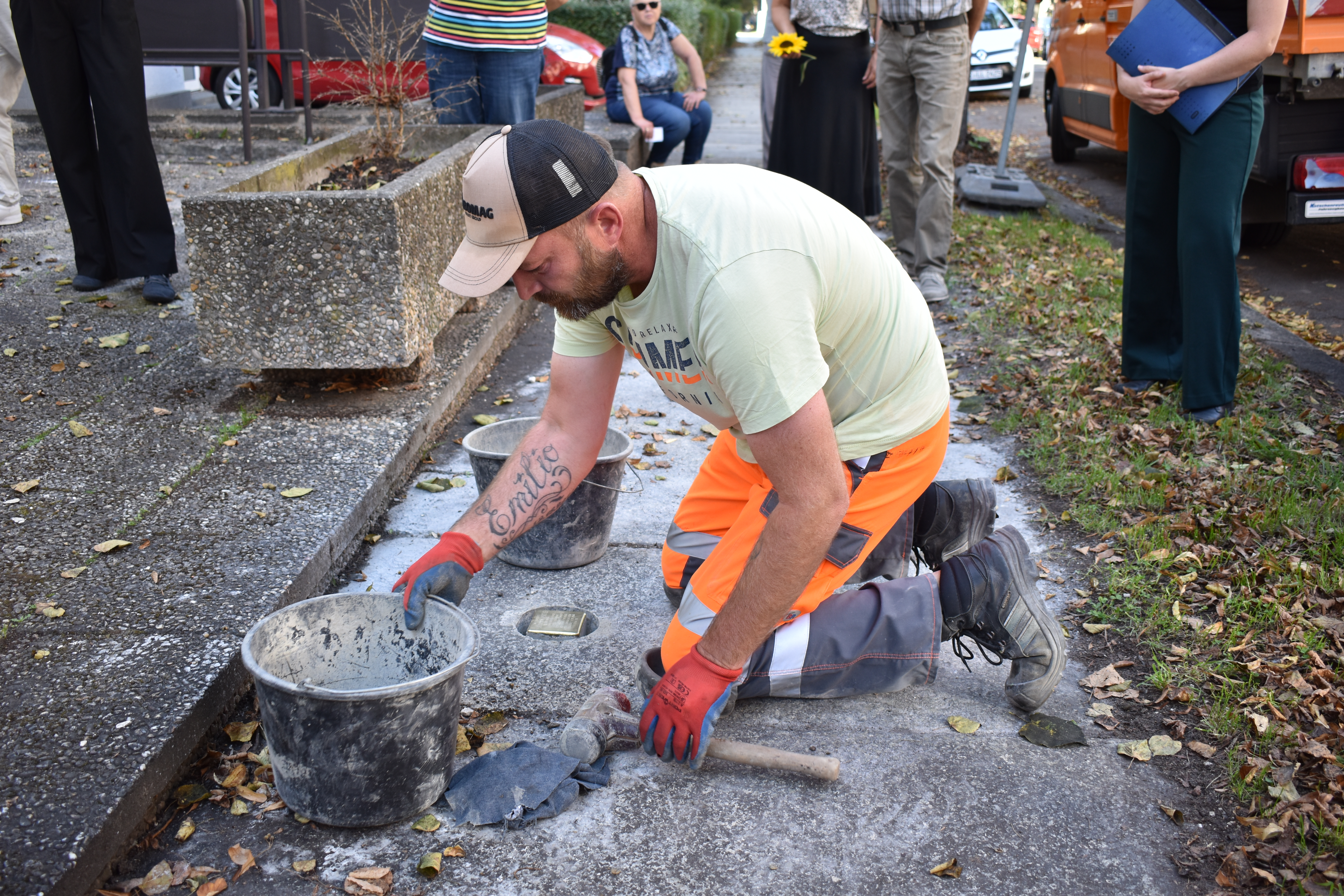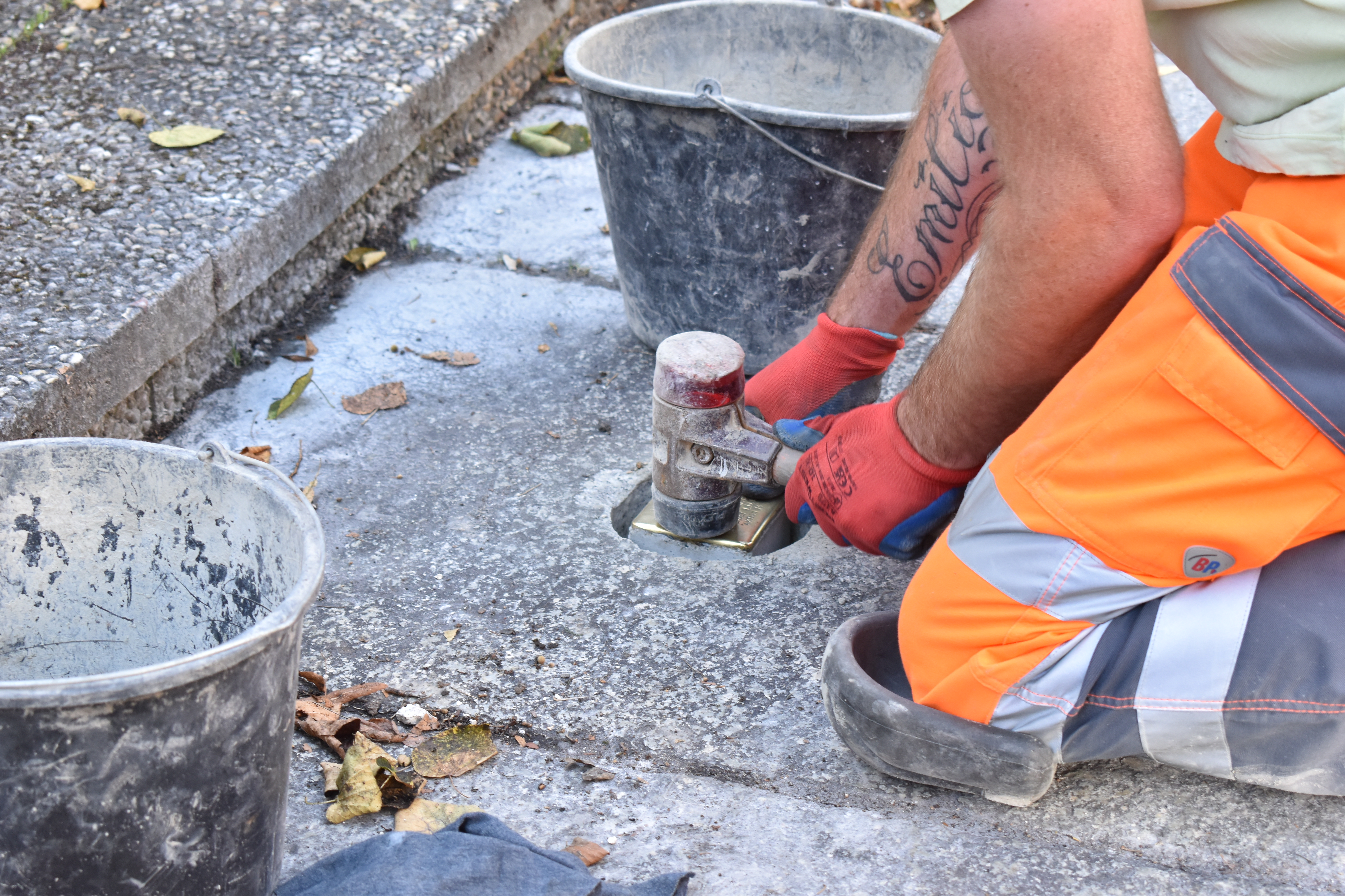 Fotografie z pokládání kamenů úrazu