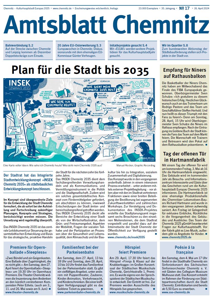 - Plan für die Stadt bis 2035: Stadtrat beschließt Integriertes Stadtentwicklungskonzept "INSEK Chemnitz 2035" als städtebauliches Entwicklungskonzept