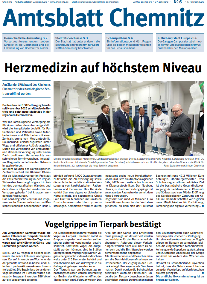 - Amtliche Bekanntmachung der Stadt Chemnitz zum Nachweis des hochpathogenes Influenza A Virus des Subtyps H5N1