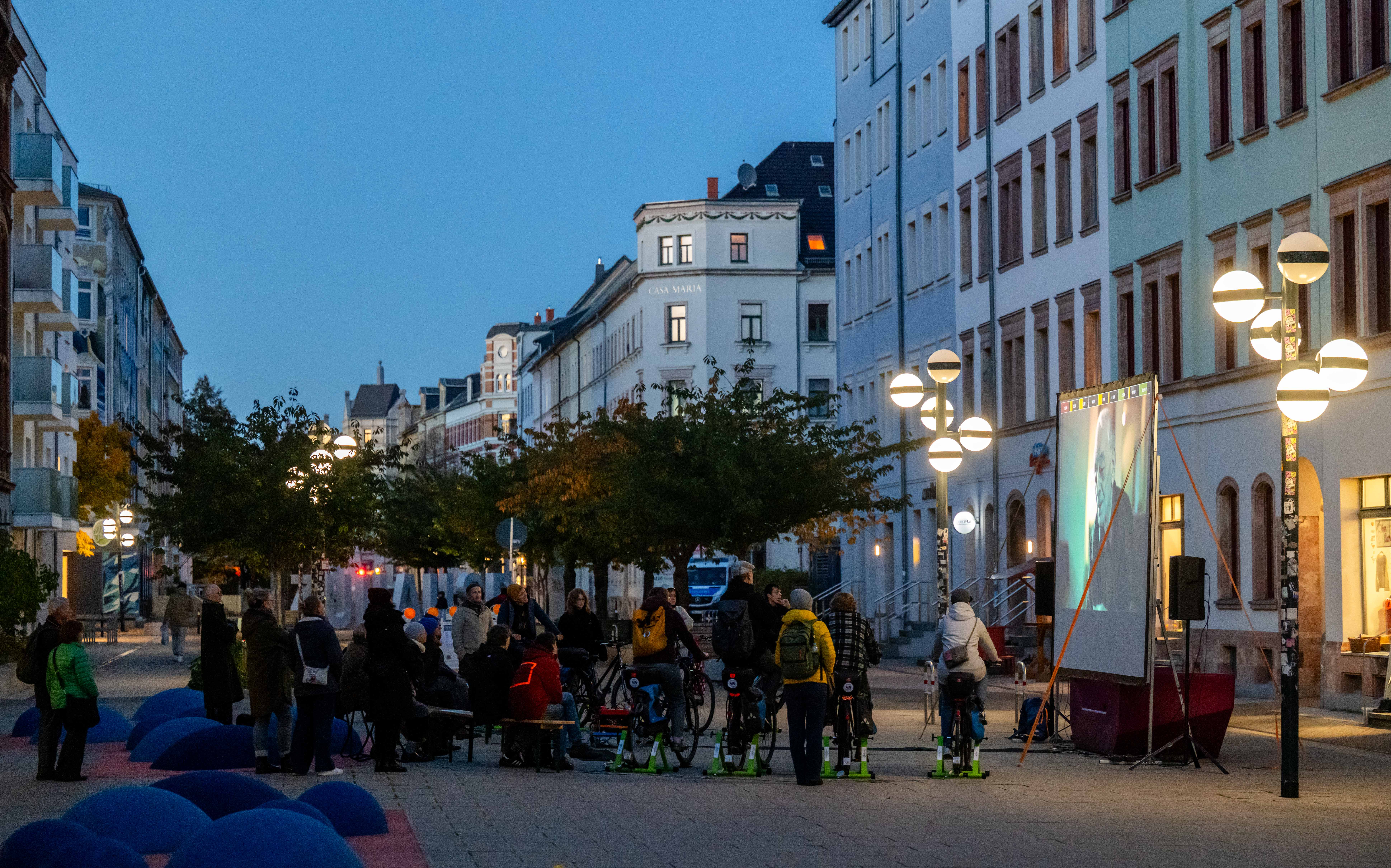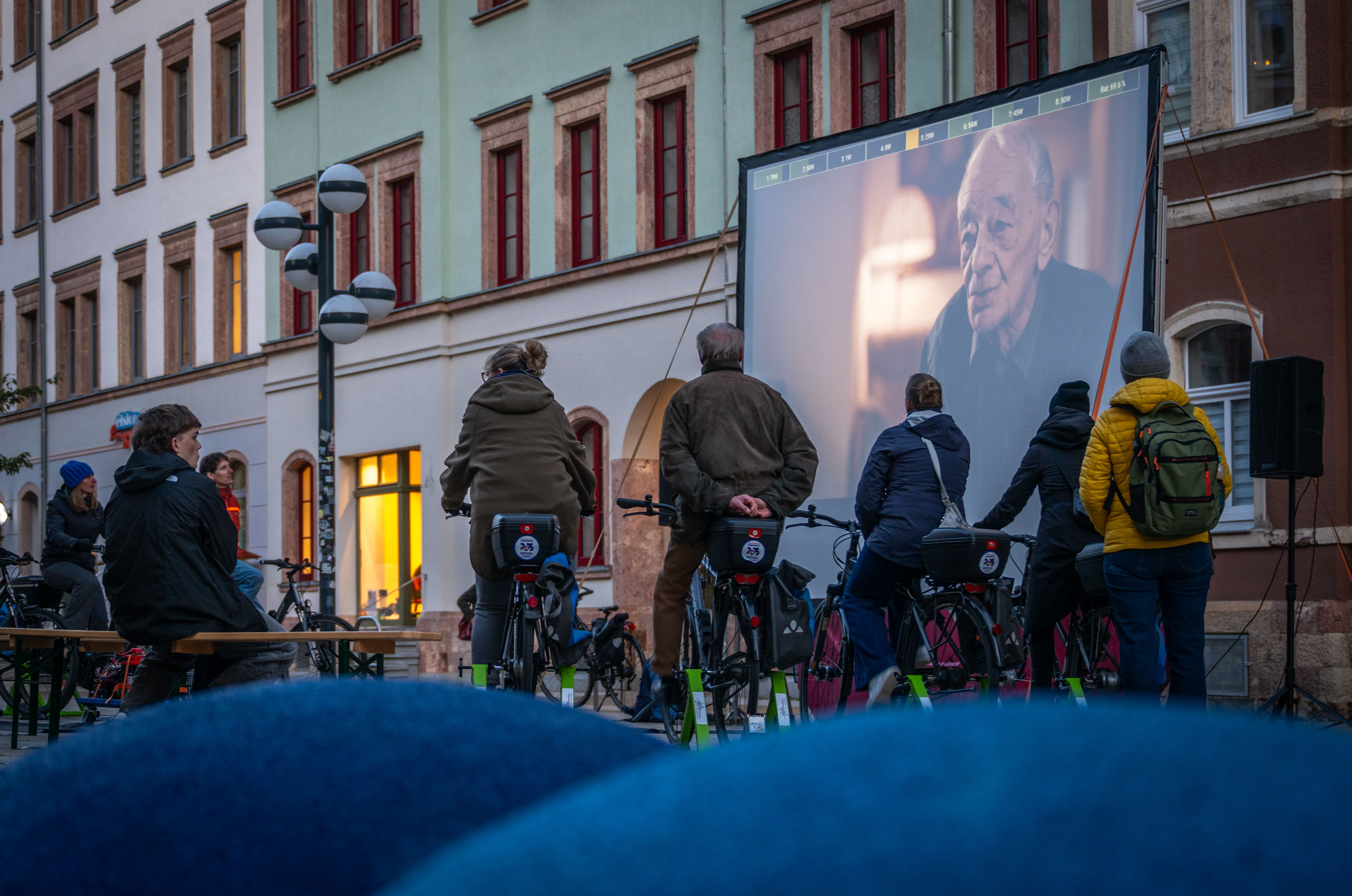 Das Programm endete mit einem Akustikkonzert der Band „Solche“ und dem Fahrradkino mit dem Film „Justin Sonder“, der Kindheit, Deportation, Rückkehr und die heutige Erinnerungskultur in Chemnitz thematisiert.