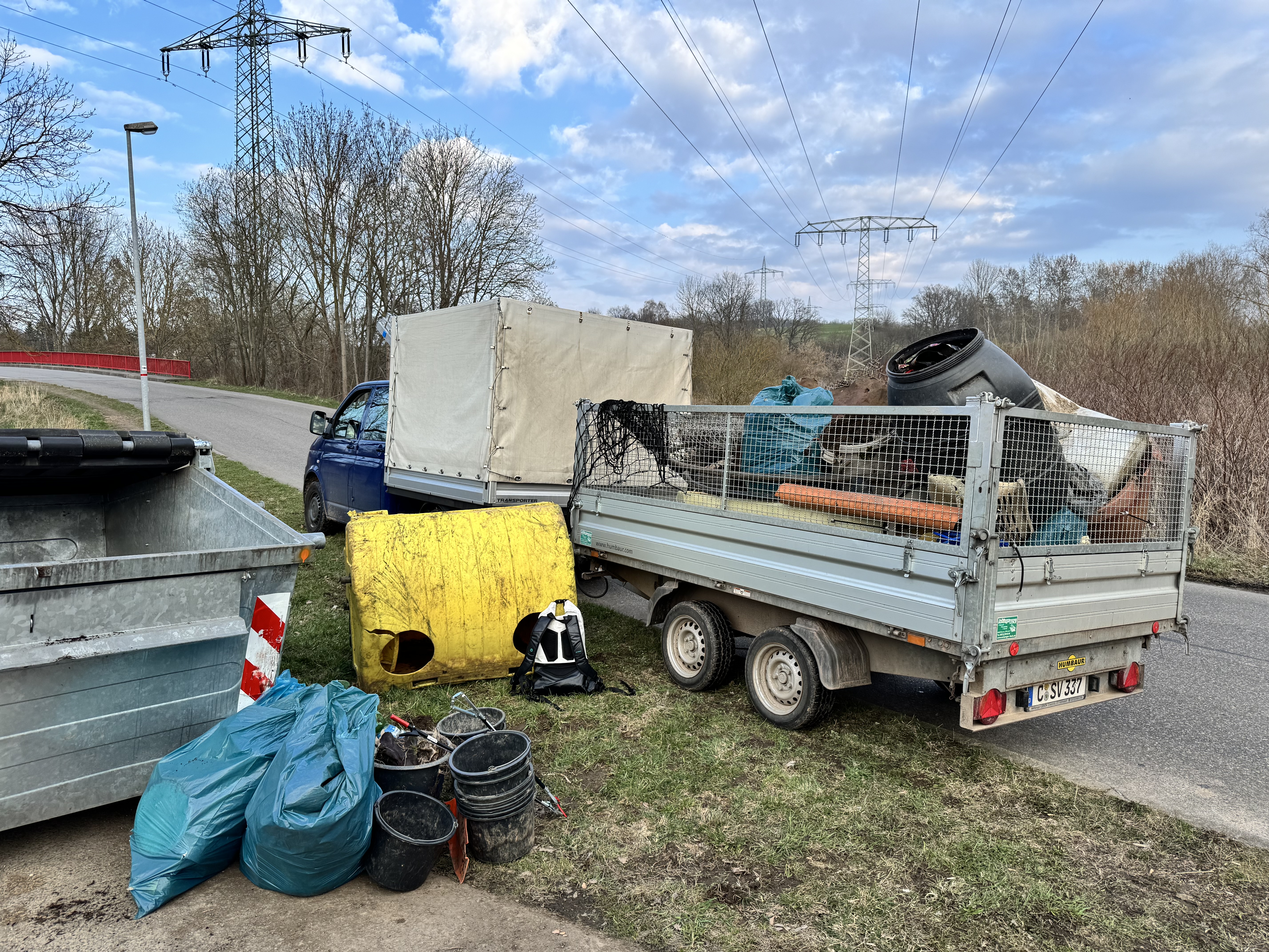 Im Naturschutzgebiet „Chemnitzaue – Draisdorf“ fand entlang beider Seiten der Heinersdorfer Straße am 20.03.2026 eine gemeinsame Müll- und Abfallberäumungsaktion statt. Insgesamt beteiligten sich 27 Personen an dem Einsatz. Neben Mitarbeitenden der Unteren Naturschutzbehörde und der Naturschutzstation engagierten sich Teilnehmende der Jungen Naturwächter (JuNa), ehrenamtliche Naturschutzhelfer, mehrere Pfadfinderinnen und Pfadfinder sowie weitere Freiwillige.