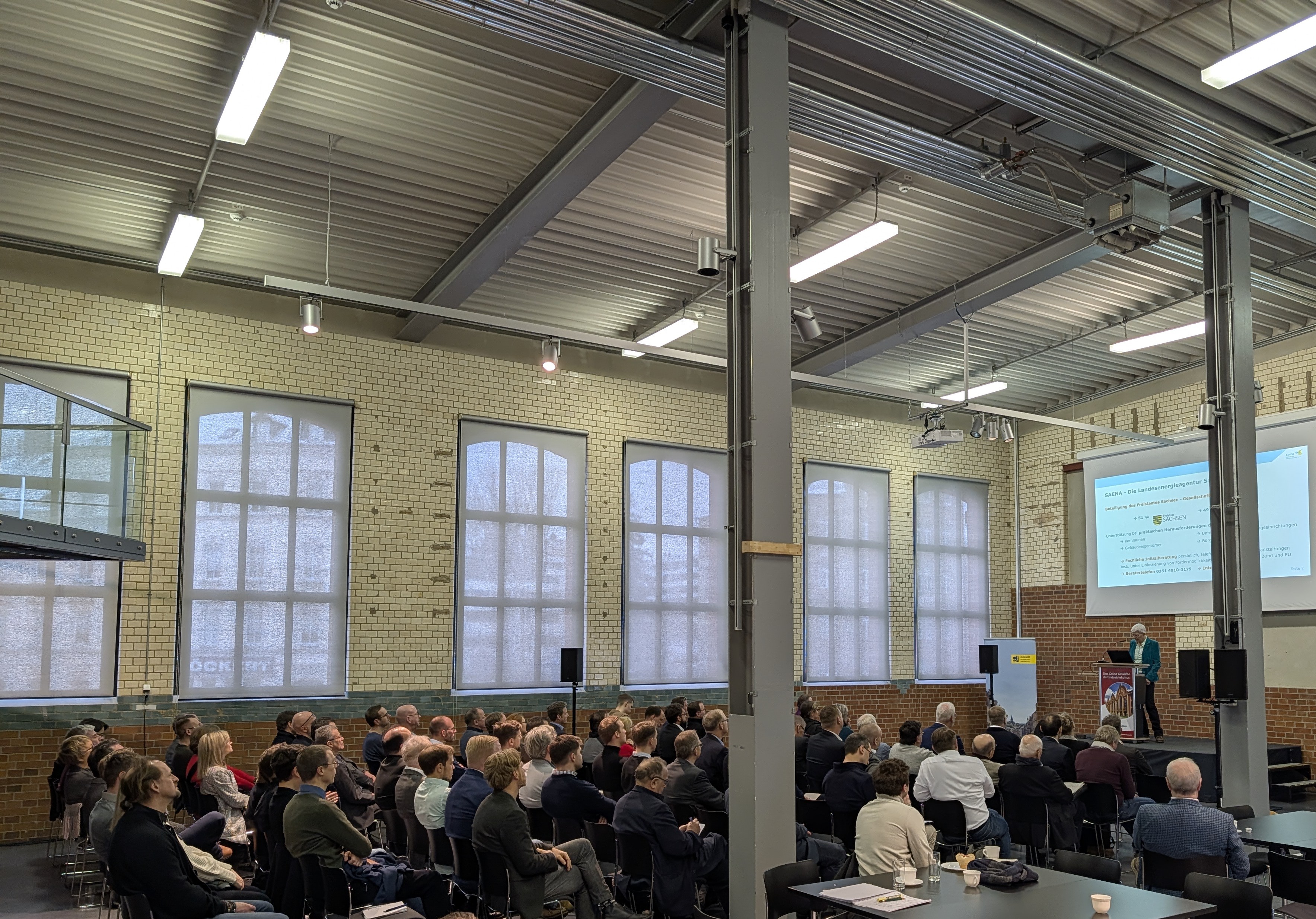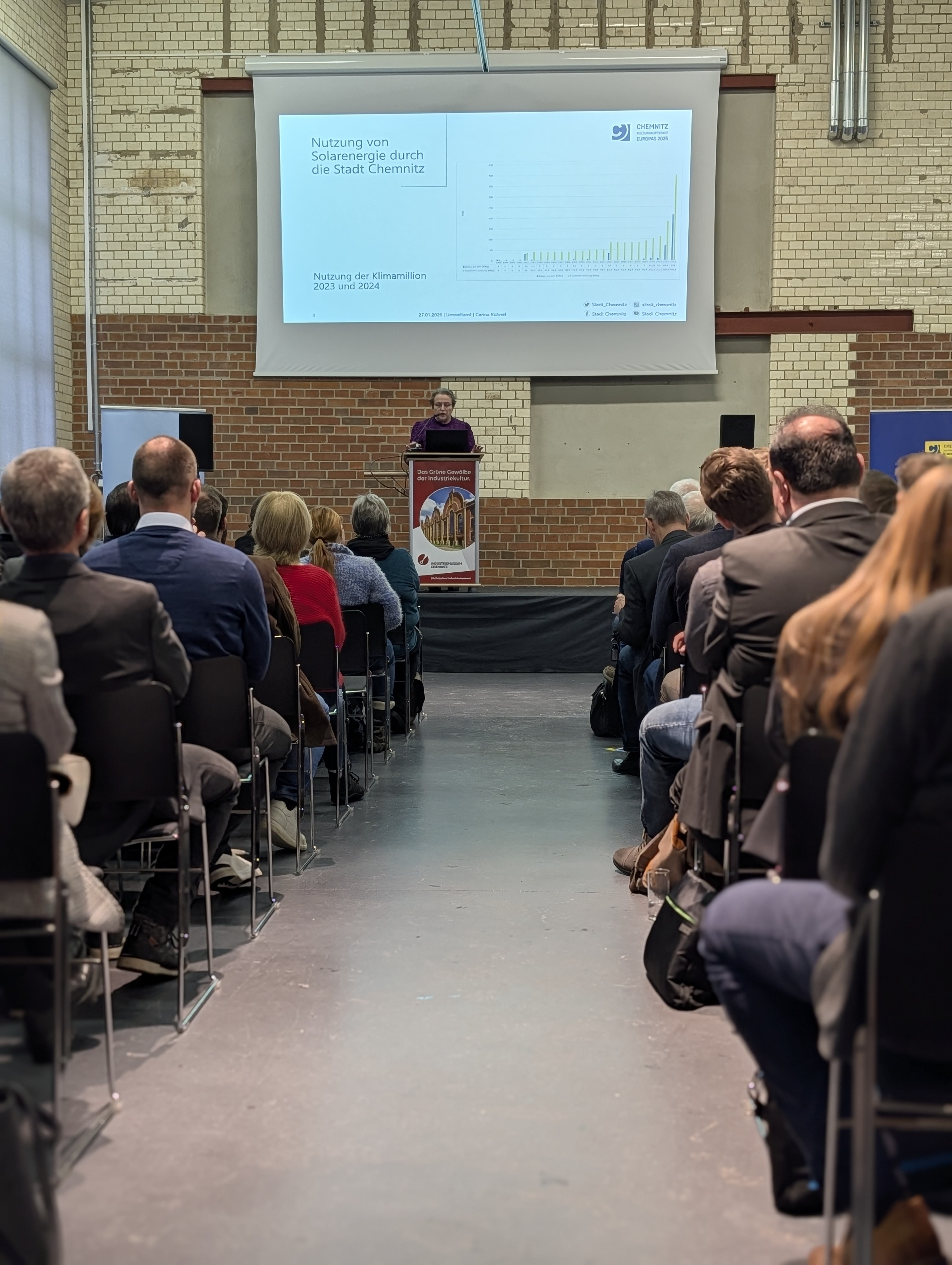 Ca. 70 Unternehmerinnen und Unternehmer aus der Region fanden sich zu informativen Kurzvorträgen zusammen. Von den Referentinnen und Referenten wurde unter anderem auf die Treibhausgas-Emissionen und Potentiale zur Einsparung in der Stadt Chemnitz, die momentane Lage der Versorgungssicherheit sowie auf rechtliche Rahmenbedingungen der Eigenstromversorgung mit Photovoltaikanlagen eingegangen. Die Moderation des 1. Energiedialog Chemnitz übernahm Prof. Dr. sc. techn. Erfurth.
