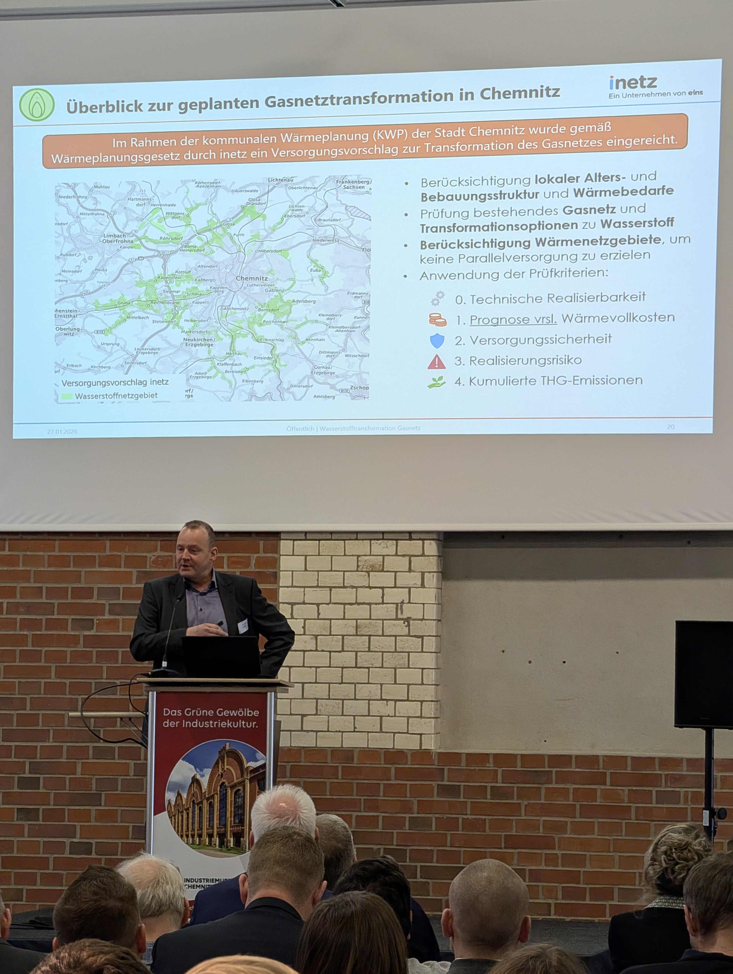 Am 23. Januar 2024 wurde die zweite Auflage des Energiedialogs Chemnitz durchgeführt. In diesem Jahr wurde die Veranstaltung im Kammersaal der Industire- und Handwerkskammer (IHK) Chemnitz durchgeführt. Thematisch wurden Fragen zu Innovationen und Effizienz, aktuelle Markt- und Preisentwicklung bei der CO2-Bepreisung, rechtliche Neuerungen aus dem Energieeffizienzgesetz (EnEfG) und dem Gebäudeenergiegesetz (GEG) aber auch finanzielle Themen berücksichtigt. Dabei stellte unter anderem der Geschäftsführer der eins energie in sachsen GmbH & Co. KG (eins), Herr Roland Warner, den Kohleausstieg des Energieversorgers vor. „Eine Vermeidung von 85 bis 90 Prozent der Treibhausgasemissionen bis 2045 ist in Chemnitz realistisch. Die letzten 10 bis 15 Prozent sind mit exponentiell steigenden Kosten verbunden.“, so Herr Warner.