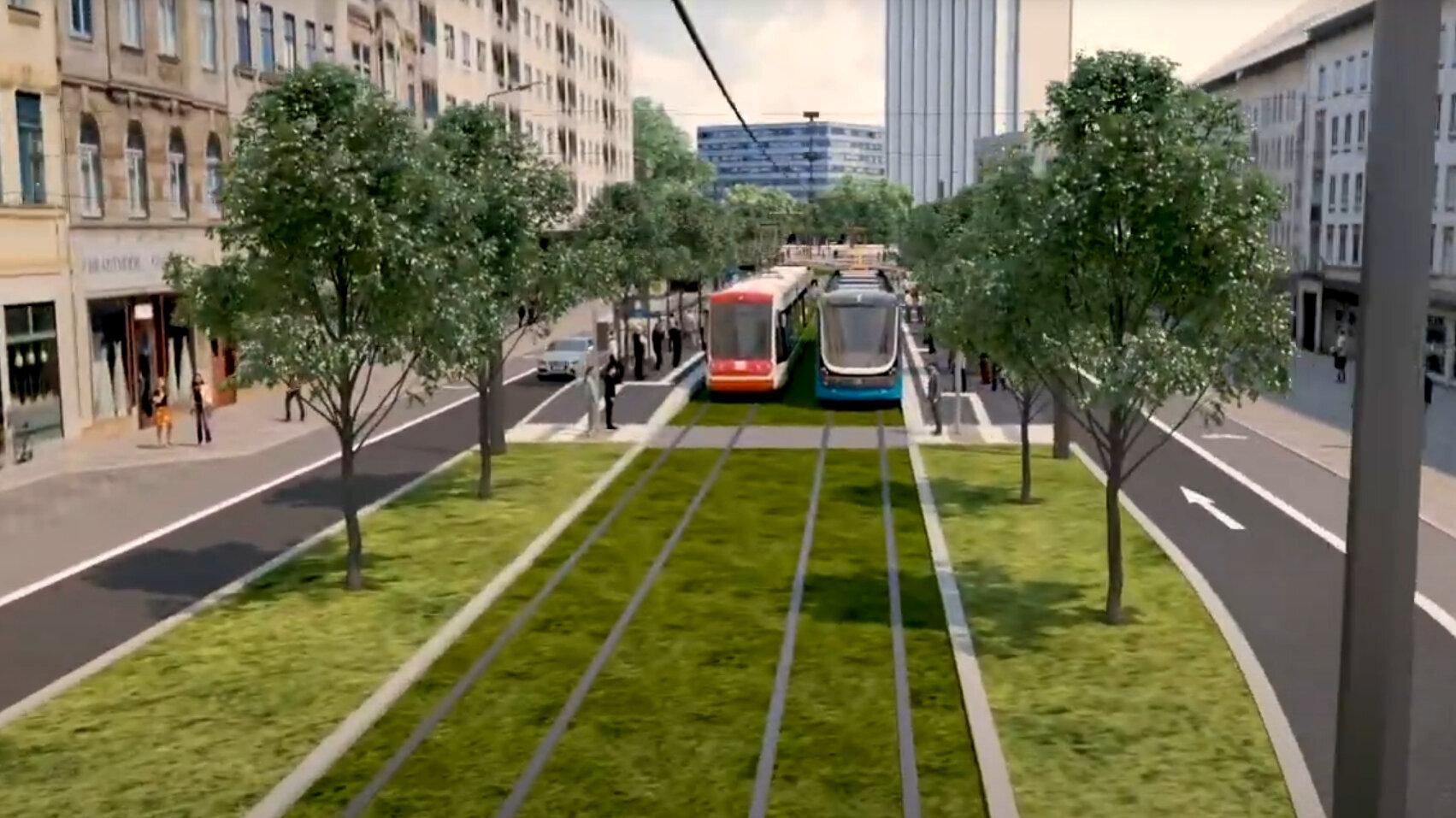 - Im ersten Schritt wird der Zentrumsring um die Chemnitzer Kern-Innenstadt geschlossen. Die Bahngleise können bis Konkordiapark verlängert werden, sechs neue Haltestellen entstehen.