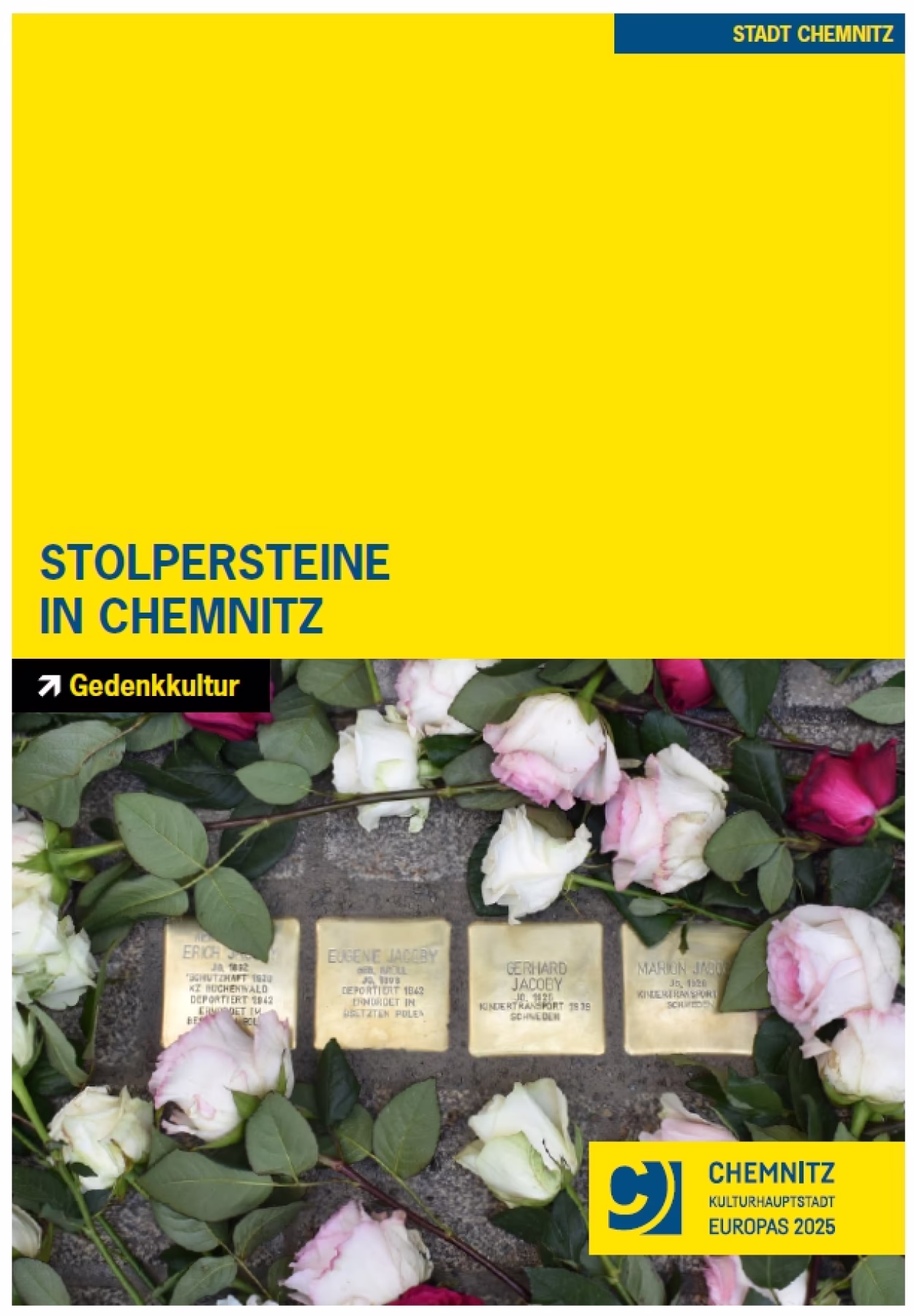 The "Stumbling Stones in Chemnitz" brochure provides an overview of the laying of stumbling stones in the city, information on how to sponsor a stumbling stone and tells the life stories of exemplary Chemnitz citizens who were persecuted during the National Socialist era.