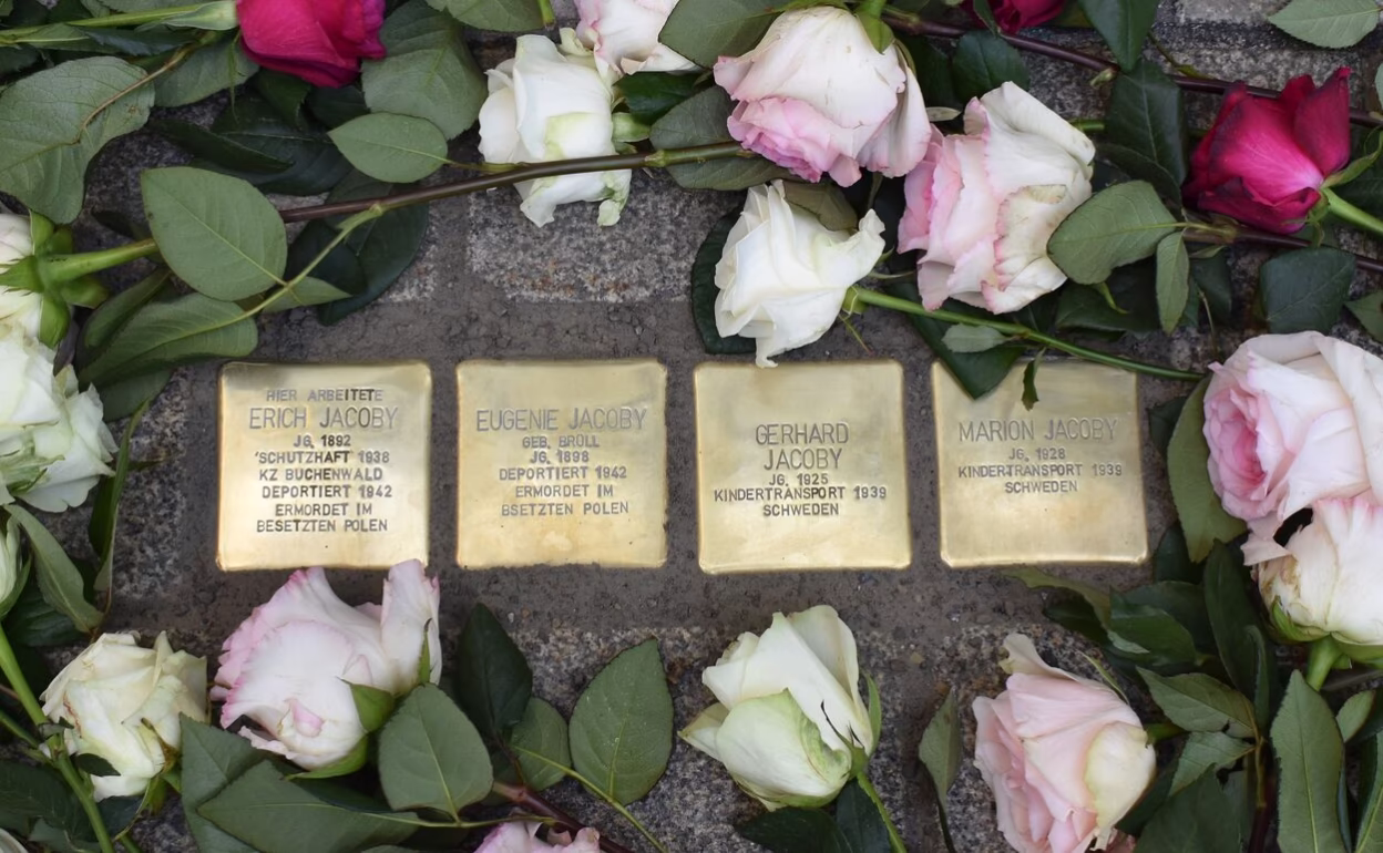 Stumbling stones for Erich, Eugenie, Gerhard and Marion Jacoby