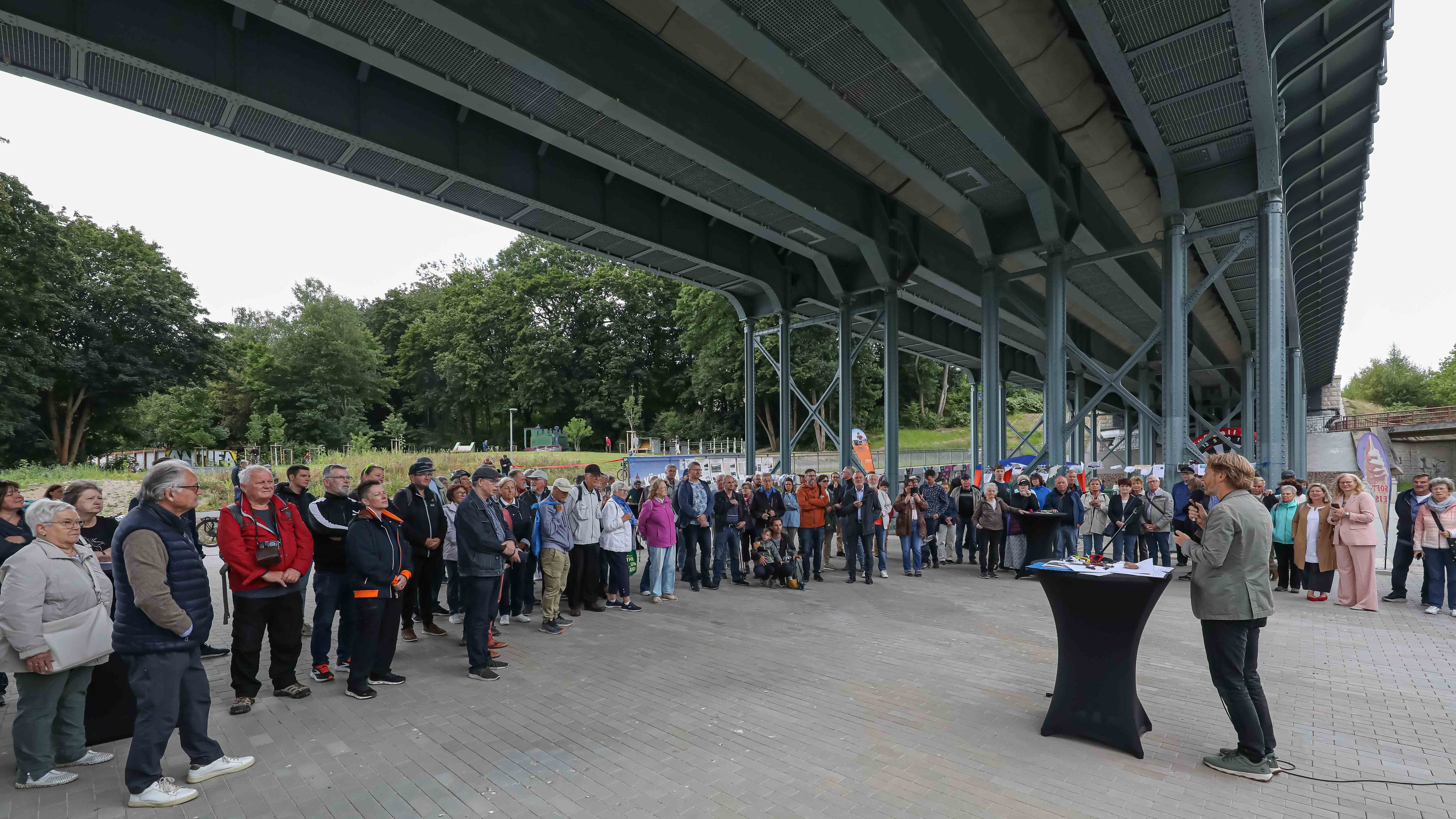 The intervention area below the railway viaduct was opened on 23 August 2025 as part of the "Fertsch" weekend, which celebrated the completion of almost all intervention areas. Despite the rainy weather, numerous guests came to celebrate with a colourful entertainment programme for young and old.